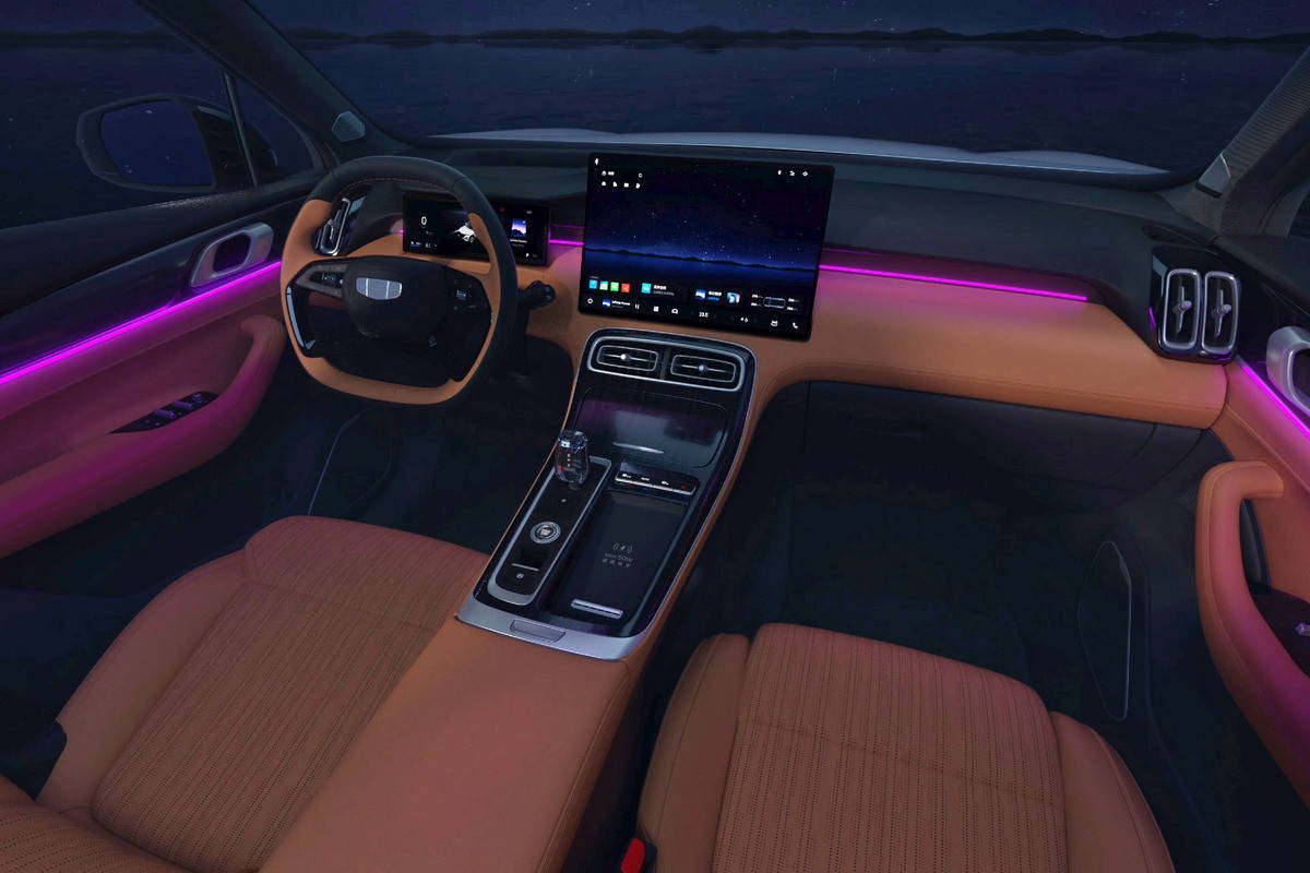 新款吉利博越 L 的配置清单还包括:配备 16 个扬声器(包括驾驶员座椅头枕中的扬声器)的 Flyme Sound 音响系统、座椅加热、通风和按摩功能(前排乘客座椅还配有折叠式脚凳)、投影显示屏、动态车内氛围灯、可从遮阳板滑出的玻璃(防紫外线;吉利称之为“太阳镜”)以及各种驾驶辅助系统(自适应“巡航”、自动刹车系统、车道保持等)。然而,在当地改款前昂贵装饰级别中也有类似的配置。