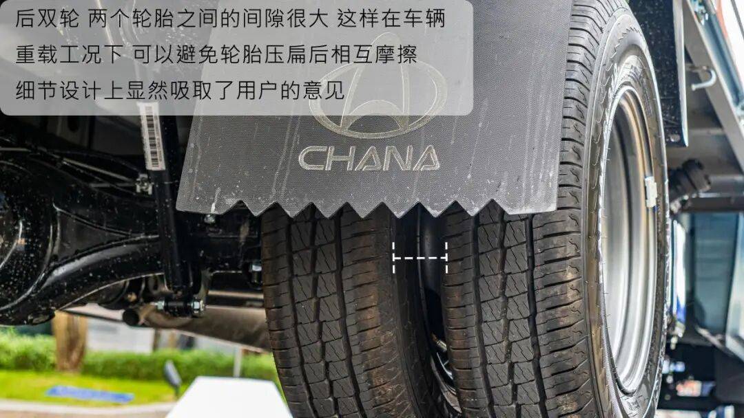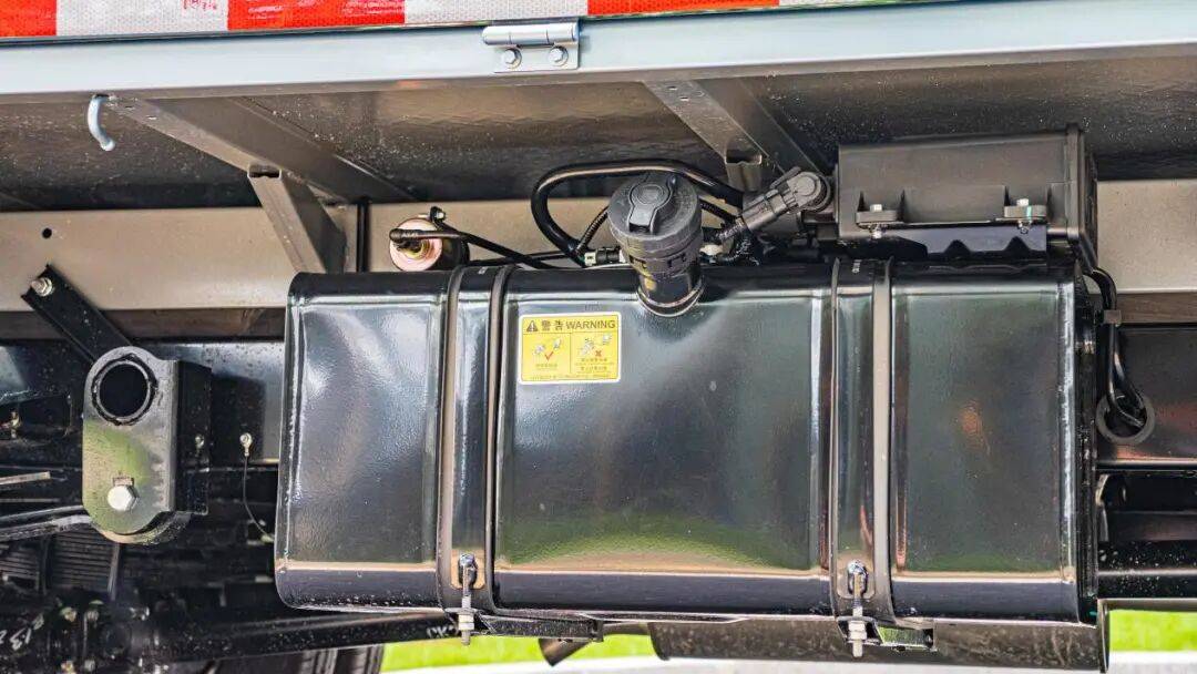 前后悬架均为钢板弹簧非独立悬架,前悬加装横向稳定杆,采用宽体轮距托板设计,让车辆重载转弯时有效降低侧倾,提高货运安全性。