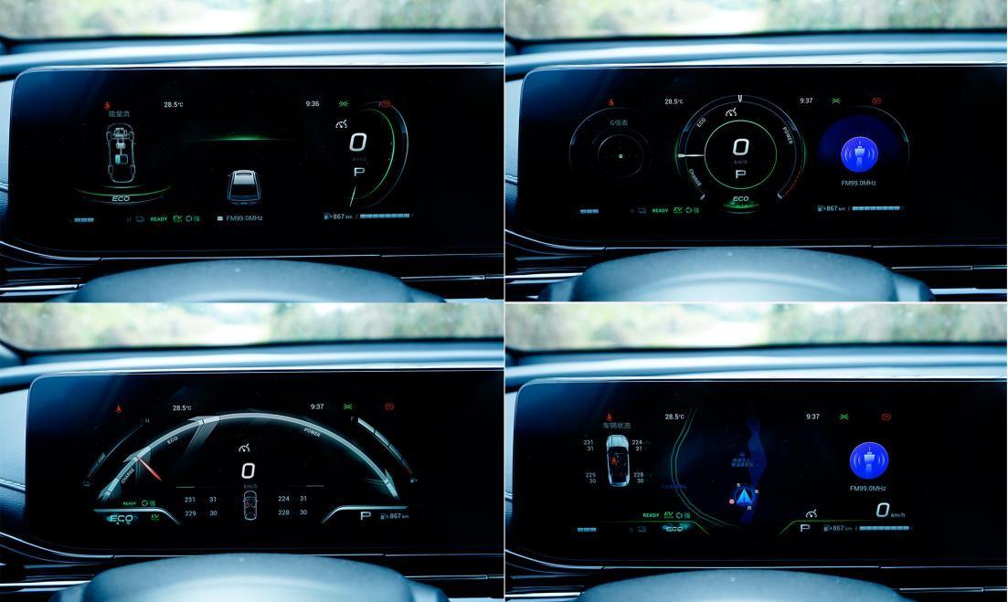 10.25英寸全液晶仪表盘采用画面为主的展示,支持导航投屏,保留了加速G值图标,新增能量流显示,便于观察系统的能量状态。