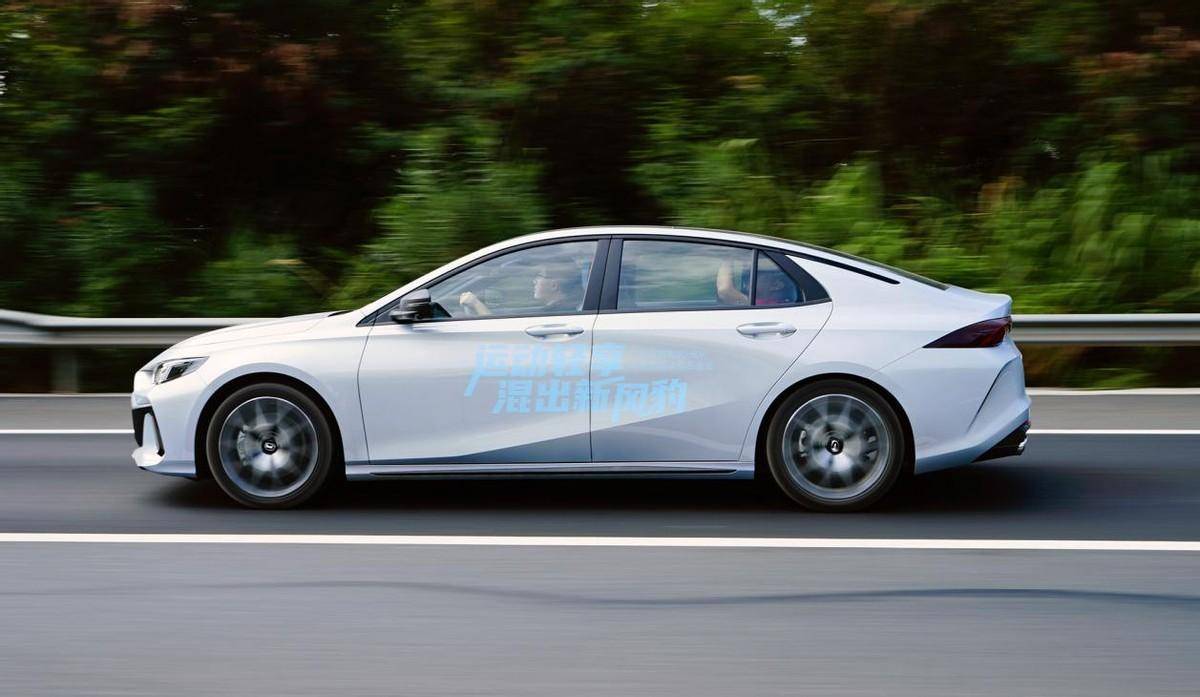 侧面看车身高度较低,前悬较短、后悬较长,与纵置后驱车身结构靠近。车头下压感明显,整个车顶线非常顺滑,与尾箱自然衔接,形成溜背造型,实现了0.26Cd较低的风阻系数。三立柱造型让车窗变得更加简洁,固定窗融合在后窗内部,C柱格外粗壮结实,更有力量感。另外,车身的曲面变化也很丰富,多道棱线显得起伏有致。尺寸方面,长宽高分别为4700/1850/1440mm,轴距为2736mm,轴距、长度和宽度都适中,高度方面控制得很好。
