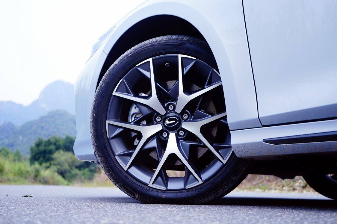 高配车型采用18英寸轮圈,双色五辐Y字造型内外嵌套,很有设计感。轮胎规格为225/45 R18,胎宽合适,匹配佳通Comfort F22系列产品,滤振和静音能力都不错。