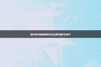 探讨影豹座椅调节左右的功能与技巧