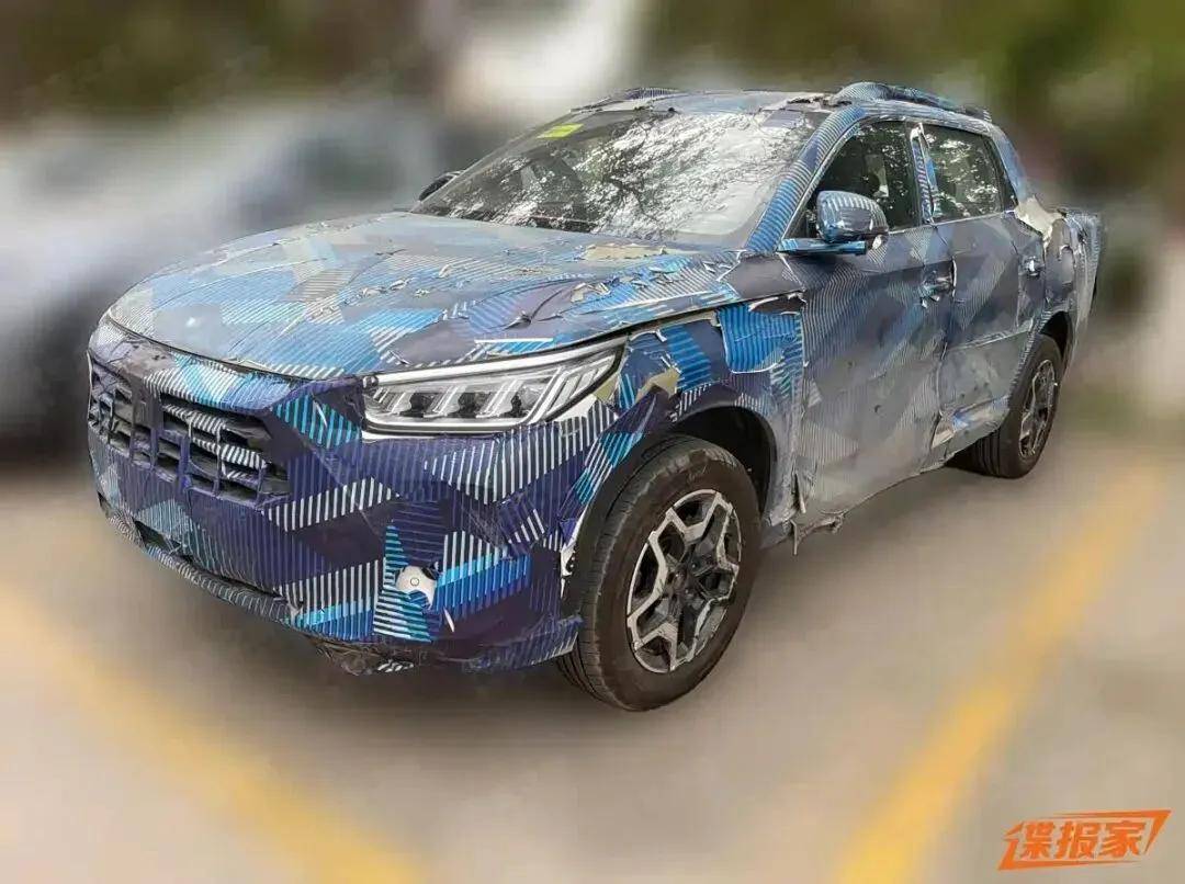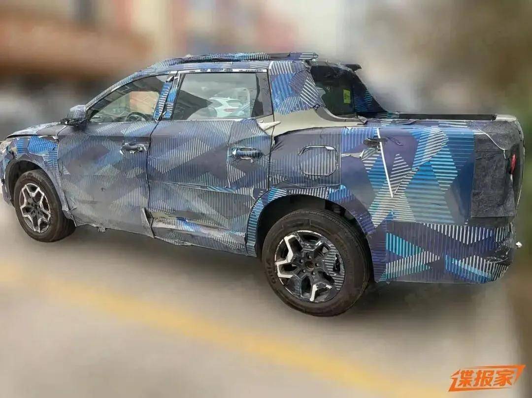 外观采用龙颜设计,大嘴式进气格栅与上方贯穿式镀铬装饰类似比亚迪宋L,雾灯C字形,双腰线锐利,后翼子板有力量感,双排设计,车身紧凑,尾部贯穿式尾灯,后货箱尾门下翻开启。