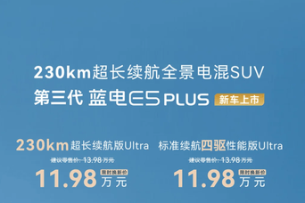 第三代蓝电E5 PLUS上市 限时换新价11.98万元起