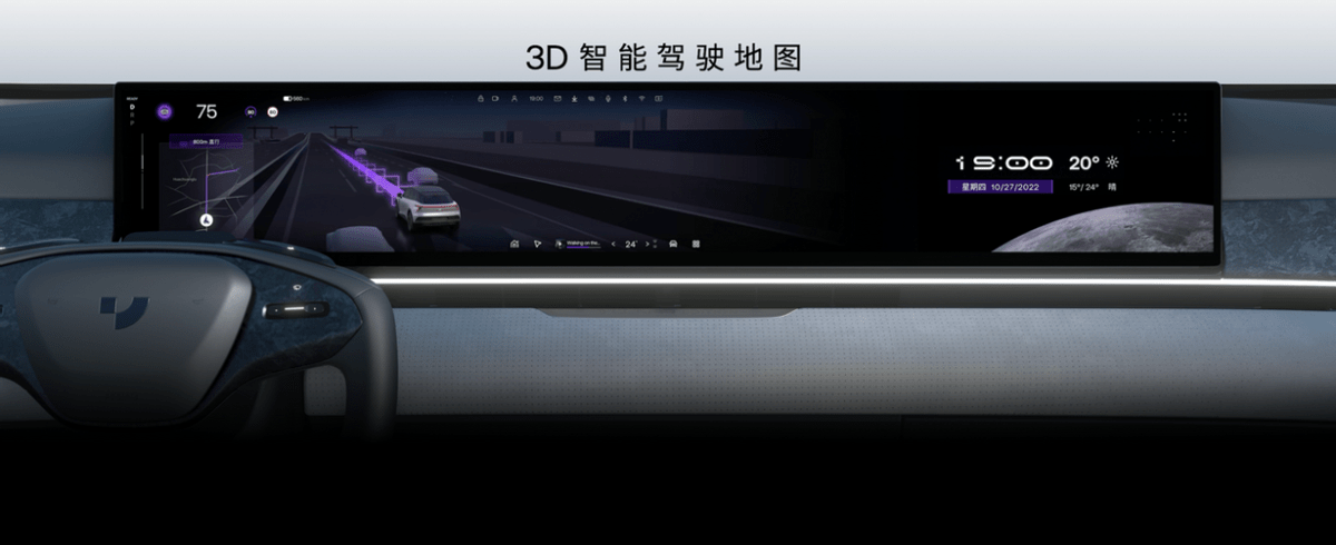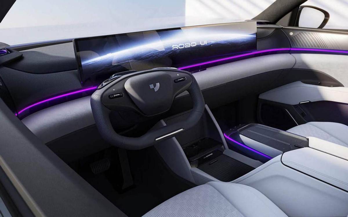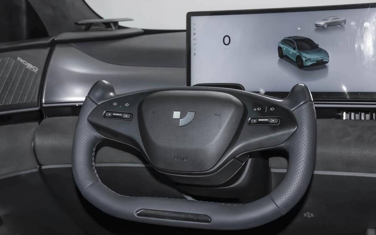 最后就是内饰部分了,此次官方并没有公布内饰官图,所以我们基于此前的集度ROBO-02车型内饰设计能够看到,新车采用了环抱式的设计,同时配有多色氛围灯。而方向盘则采用半辐式设计,在前方还提供一块预计尺寸将超27英寸的超大中控显示屏,以带来出色的视觉感受和科技氛围。