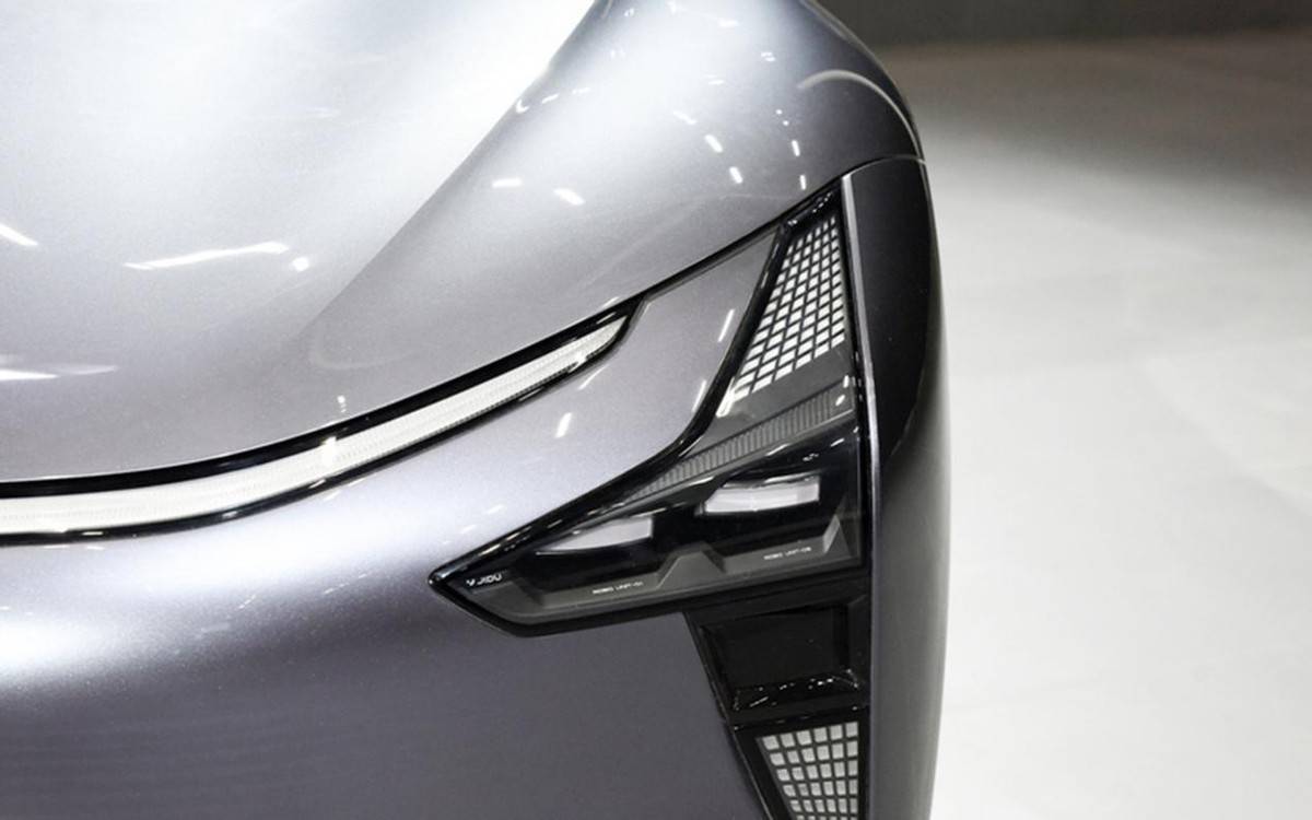 从外形方面来看,极越07的造型基本保持了此前在2022年广州车展上所亮相的集度ROBO-02车型上的设计风格。前脸配备了电动车所惯用的封闭式设计,而贯穿式的LED灯带则很好地提升了整车科技感。此外,Y字形的大灯组看起来也挺有冲击感,配合上较宽的车头,整体也营造出来了一种前卫、时尚的简约科技之风。