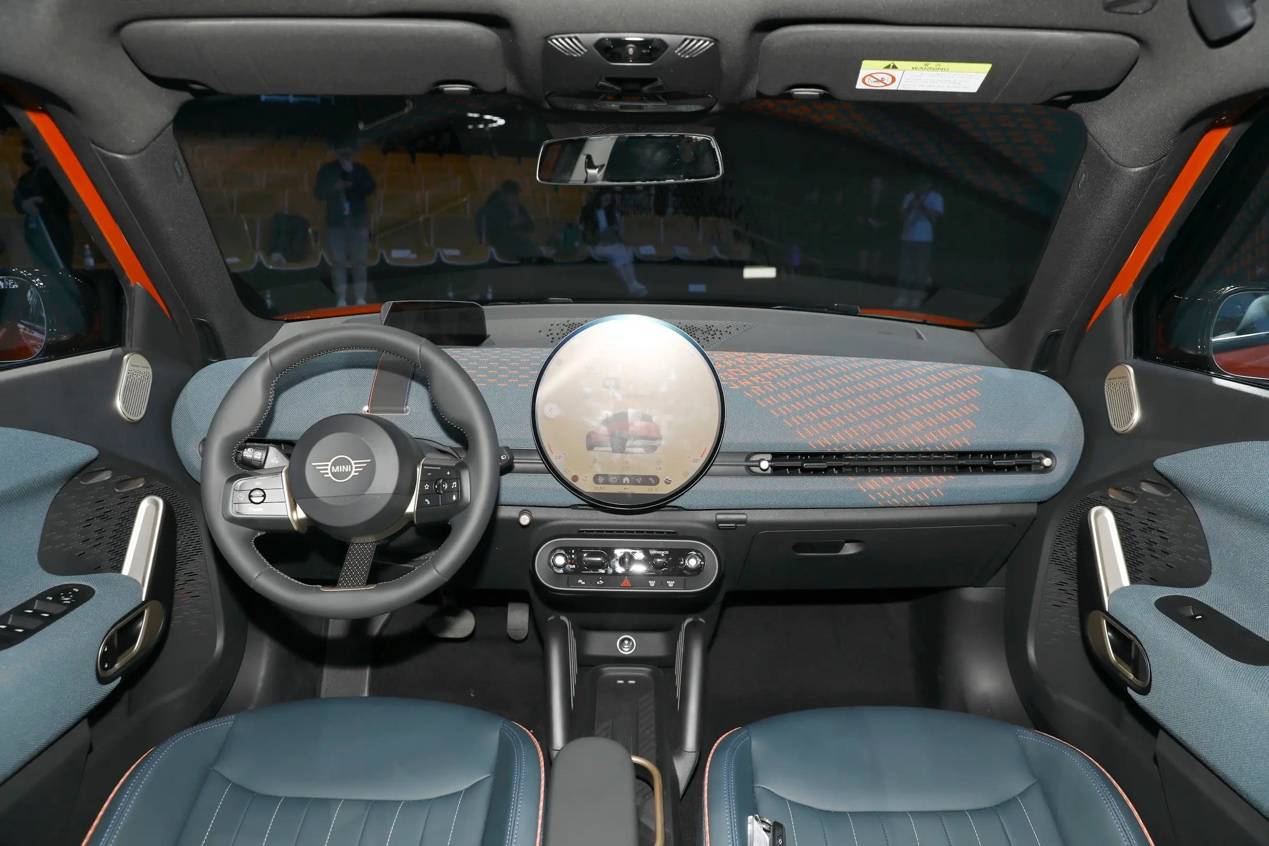 相比过去,MINI新款纯电系列内饰座舱更为简约,不过更易于操作的全新方向盘、独特的圆形OLED中控屏、经过改造的5联式拨杆,依旧保留MINI的经典元素,尤其是圆形中控屏和投影式氛围灯,将MINI的趣味性很好地展露出来。