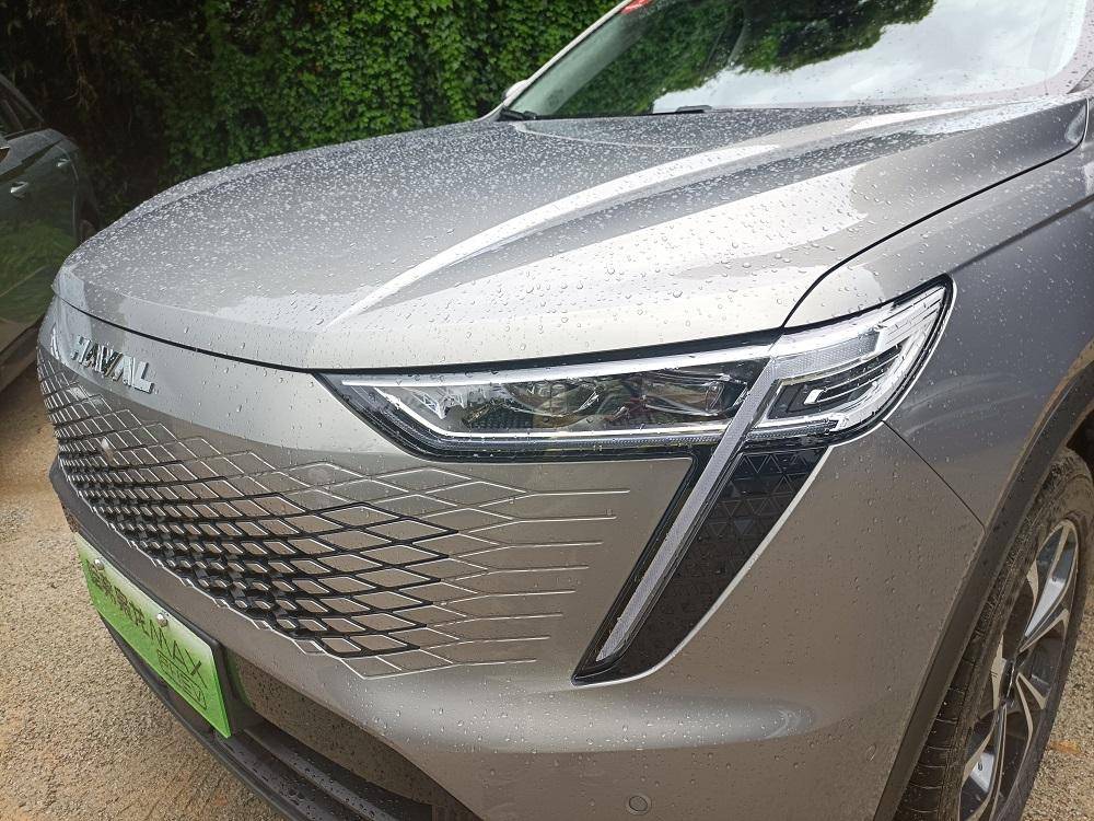 车头浑然大气且极具个性,顶部装饰哈弗的字母标识,回旋镖样式的前大灯组设计的棱角分明,配合修长的LED日间行车灯,点亮之后的视觉效果不错,渐变式的无边界中网有着较高的辨识度,利用菱形图案的变化打造了全新的无边界进气格栅,并且采用简约的美学元素,使得整个前杠看起来更加时尚个性、科幻和魔幻。