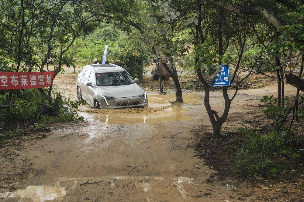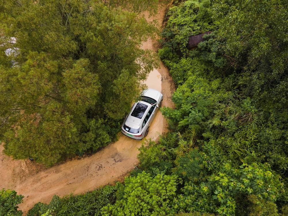 这就保证了在各种路况下的动力输出和较低水平的综合能耗,场地试驾的设置非常专业,开车进入坑洼不平的炮弹坑和开始爬坡度较大的坡道时,该车在全新Hi4电四驱的加持下,配合iTVC 智能扭矩矢量控制系统,可实时对前后轴扭矩100:0-0:100动态分配,尽管每个轮子遇到的阻力不一样,但系统却妥妥滴让前后轴扭矩分配更为合理,尽管当天深圳下着雨,路面湿滑,但还是保证了左右车轮没有打滑并且发动机迸发出强劲的动能,让汽车轻松脱困。在缓慢上坡时,整车表现一样优秀,不仅没有打滑,各车轮的矢量扭矩一样分配合理,轻轻松松边过了坡顶。