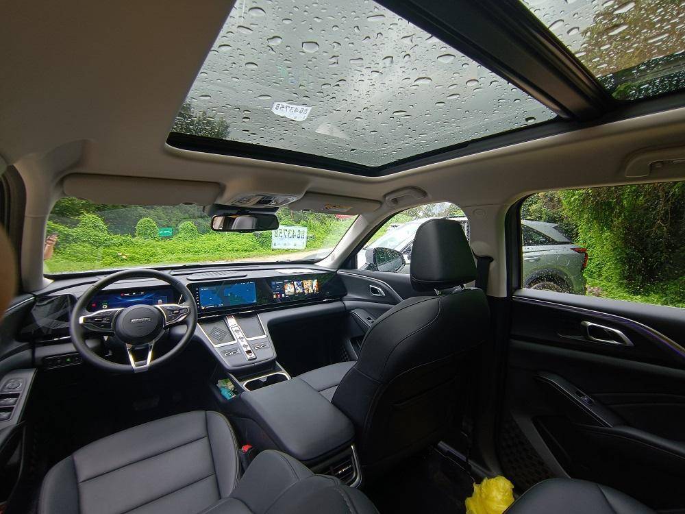 进入铺装道路驾驶,这款车的动力操控和驾驶质感就体现出来了,无论是满电还是馈电状态,动力系统的综合动力输出其实一直是线性且强劲的,即使是车身较重,但是在综合输出585牛·米的最大扭矩覆盖中,给你的驾驶感觉就是一个顺畅和舒爽。说穿了,就是让你人车合一,每时每刻都会体验到它的加速感和可靠的驾控感。