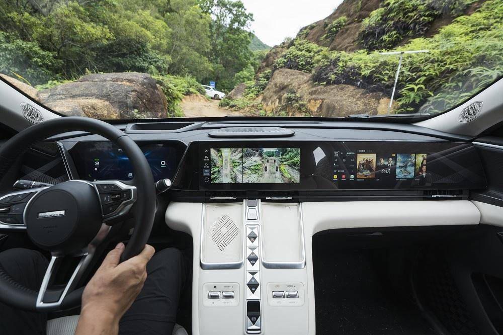 作为四驱车型其涉水脱困性也同样重要。在试驾过程中,哈弗枭龙MAX拥有450mm最大涉水深度与540°全景影像,可以自在穿行,零盲区涉水更安心。同时,在全新Hi4前后双电机的驱动下带来强劲动能,从容通过。