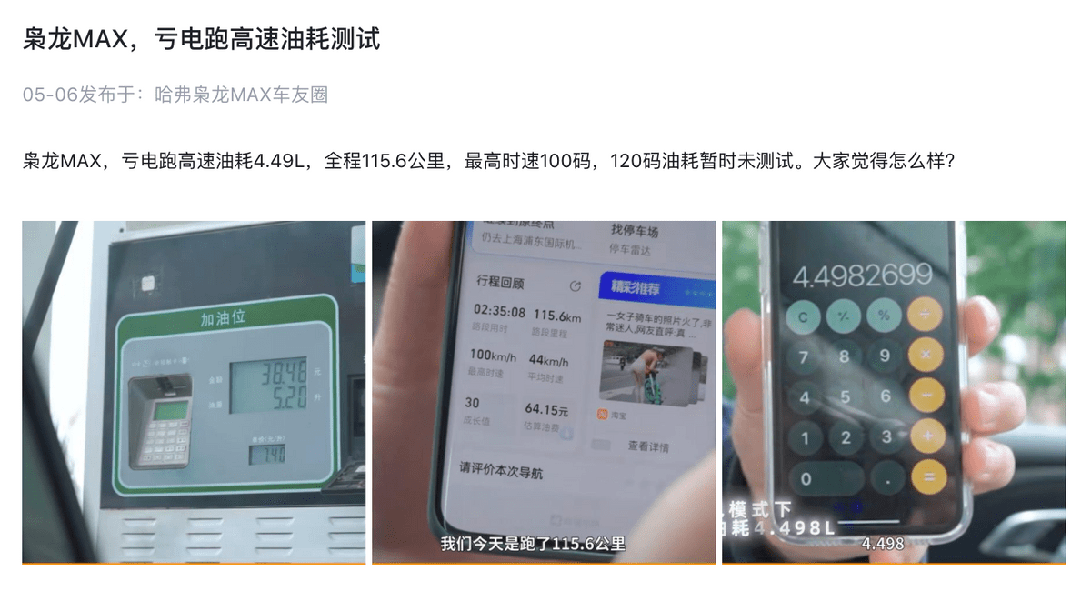 众所周知,四驱混动比起两驱混动普遍来说能耗高一些,毕竟性能摆在那里,但是哈弗枭龙MAX由于做到了双电机四驱的新构型,网友测试的亏电油耗只有4.5L/100KM,相比宋PLUS DM-i网友反馈的油耗来说,这个优势可以说是相当明显了。