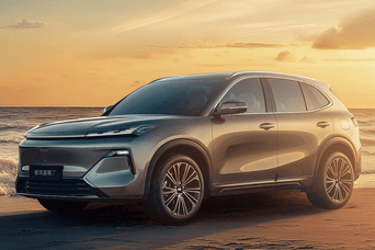 再来看新车的车身侧面部分,车身造型整体饱满厚重,是大多数SUV的经典造型,看起来与全新的哈弗H6造型相似,可以看到车顶有着明显的下滑式造型来彰显轿跑定位,车窗部分的面积很大,上方还有着细长的镀铬饰条镶嵌,车门处的腰线呈现上扬式造型,连接车门把手以及底部的饰条镶嵌,整体层次感表现出众。大尺寸的轮毂为熏黑的配色的,多幅式造型视觉效果也很个性。车身尺寸方面,尺寸方面,该车长宽高分别为4718/1880/1710毫米,轴距为2772毫米,与在售其他车型保持一致。因为出色的轴距表现,让后排腿部空间超两拳,头部空间一拳,座椅靠背支持角度调节,后备箱常规容积560L,后排座椅放倒后可扩展至1345L,满足家庭出行需求。接近角19度、离去角25度的设定,兼顾城市驾驶与轻度越野场景。