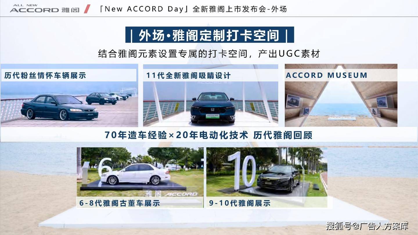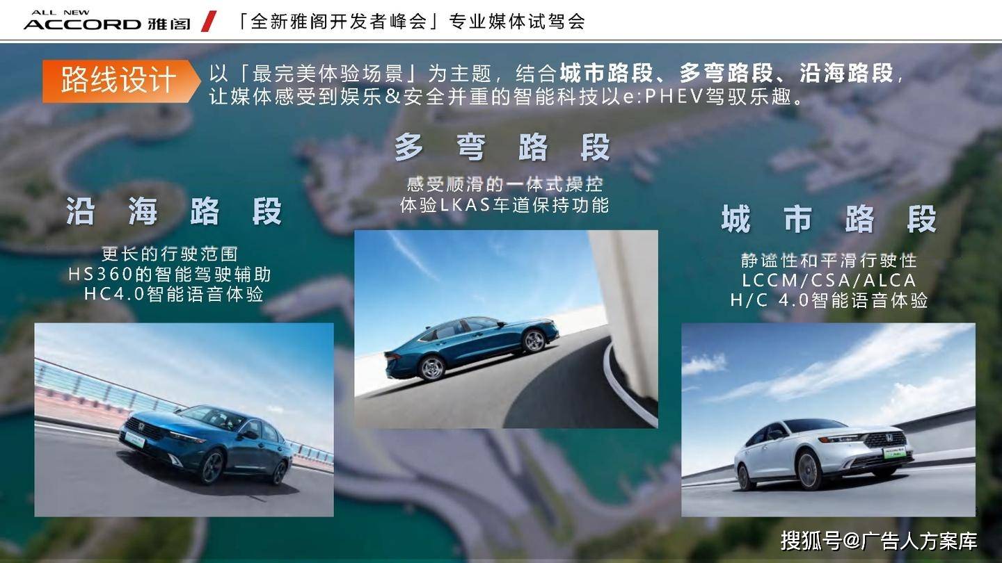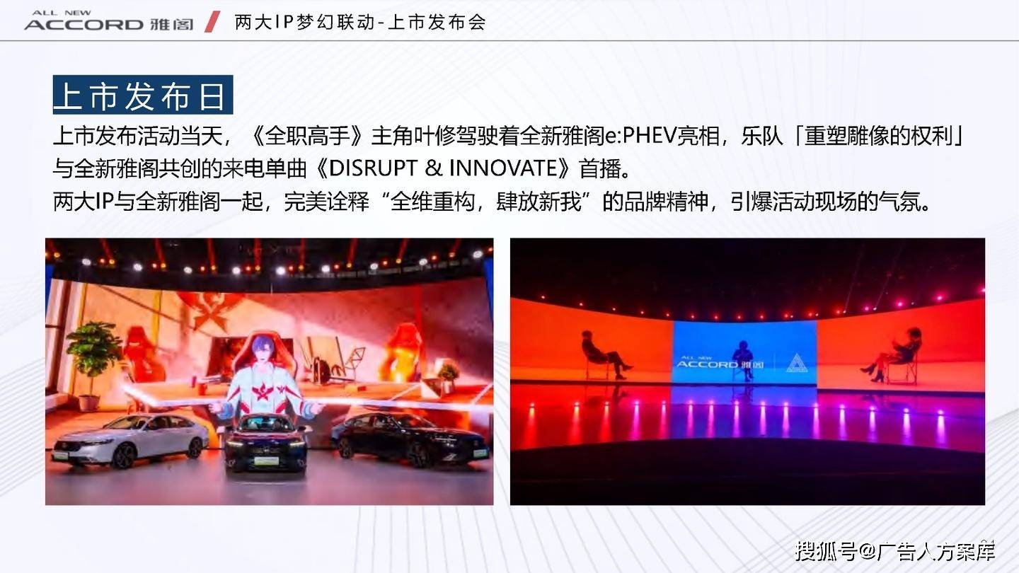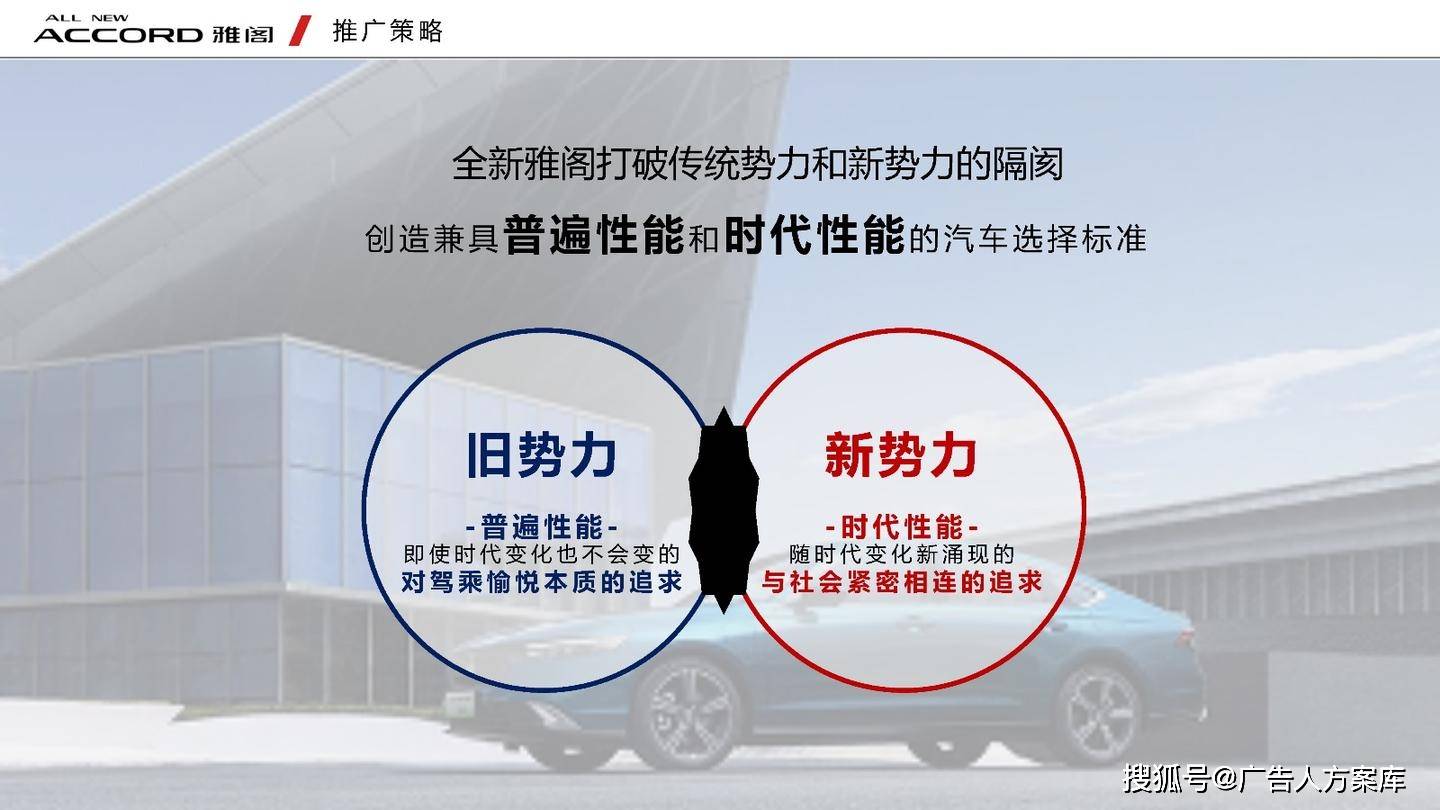 - 目标人群:瞄准高知青年群体,他们追求自我突破和高品质生活,在汽车选择上注重传统性能与智能体验。品牌形象:打破传统与新势力隔阂,提出 “真势力” 概念,以全新雅阁 e:PHEV 为核心,将品牌精神定义为 “全维重构,肆放新我”,重塑品牌形象。
