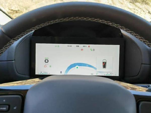 不仅如此,哈弗二代大狗Hi4版还让车叔充分体验到智能科技的魅力。采用航空电子排挡,造型类似坦克300车型的挡把造型,看上去更加硬核机械感十足。同时,全液晶仪表盘和大尺寸悬浮式中控屏,以及9英寸W-HUD抬头显示,坐在车里就可以享受满满的科技感。其中,液晶仪表屏,界面设计很简洁,显示效果也很出色,并可以和中控的部分功能关联。