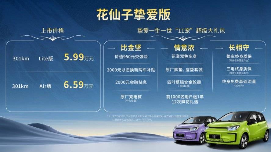 6月10日,“海鸥”挑战者—花仙子挚爱版正式上市,推出Air版和Lite版2款配置,官方指导价6.59万元与5.99万,并给出“11宠”挚爱大礼包, 把“卷福利”。