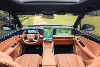 进入车内,银河A7与银河星耀8的内饰风格较为接近,提供液晶仪表盘+双辐式多功能方向盘,以及大尺寸悬浮式中控屏,中控台除手机无线充电面板及杯架外,还配备了实体按键及水晶旋钮。