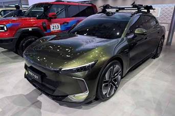 车尾部分,能够看到使用了突出的车顶尾翼,尾灯使用光带式光源,其中上部的是贯穿式,灯带两端点式光源和车头灯组灯带两侧的光源设计相呼应。贯穿式灯带下部是字母车标。