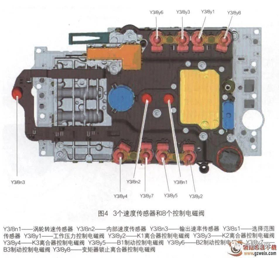 设有3个转速传感器,从而使换挡时间缩短;变速器可以通过故障诊断仪升级控制单元的软件。