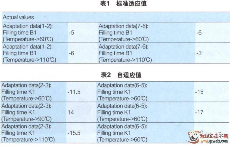 需要注意的是,在某些车辆中,在6-5挡的数值中会出现接近极限值的情况(表2),这并不是变速器出现了任何问题,在适应过程中,适应值只是针对K1的2-3挡的情况,并不影响6-5挡换挡质量。如果在试车中真的出现6-5挡的问题,则需要进一步检查。