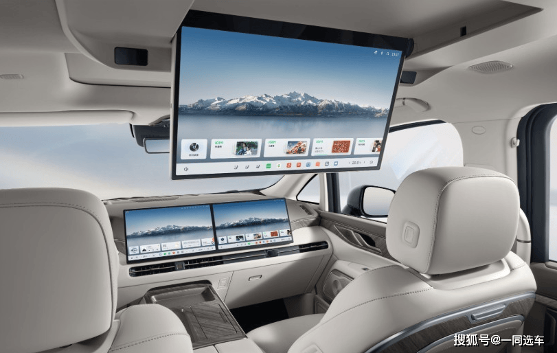 二排座椅支持加热加热、通风,并配腿托,还有小桌板可置物,顶部配17.3英寸吸顶娱乐屏,提升了后排的娱乐性,更重要的是可选零重力座椅,进一步提升舒适性;