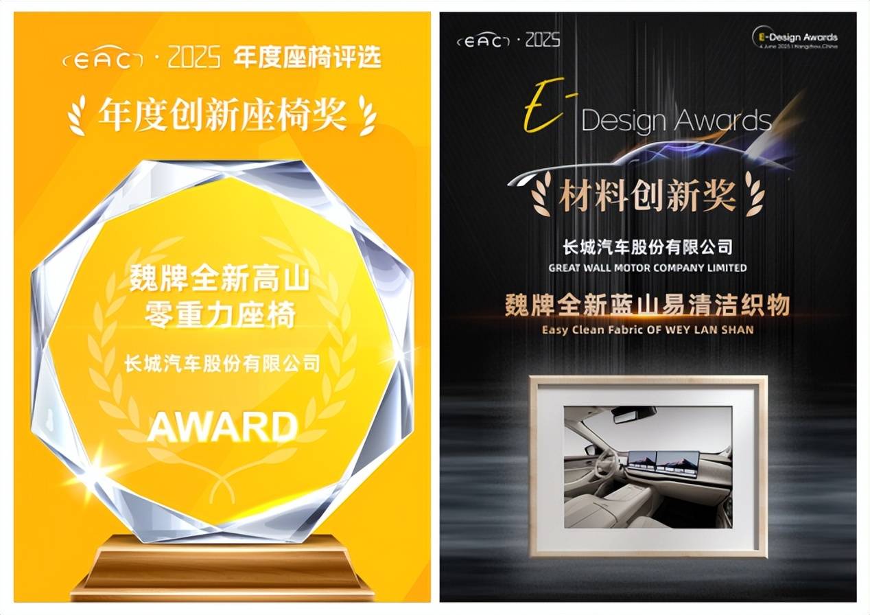 取得“EAC 2025年度座椅评选-年度创新座椅奖”与“E-Design Awards 2025材料创新奖”双奖加冕的背后,是长城汽车35年来的良好口碑和技术积淀。长城汽车每一项产品,从研发到落地,每一环节均通过行业权威测试与用户真实反馈的双重检验,以确保品质始终如一。