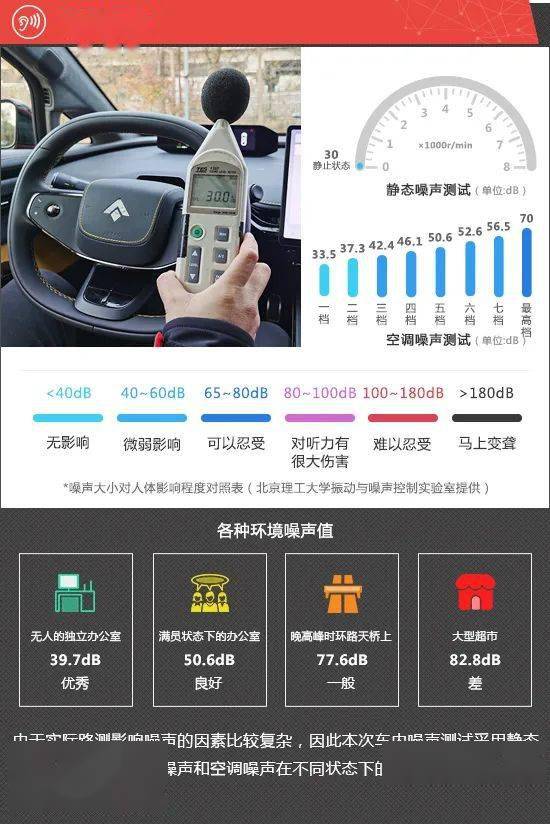 在静态噪声测试环节,2023款昊铂GT在静止状态下车内实测噪声值为30dB,达到了测试仪器的最低值。由于采用电动机驱动,车辆启动后不会出现明显的噪音。