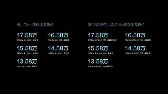 7月25日,搭载比亚迪第五代DM技术的宋L DM-i及2025款宋PLUS DM-i正式上市。两款新车各推出5个版本,官方指导价均为13.58万-17.58万元。