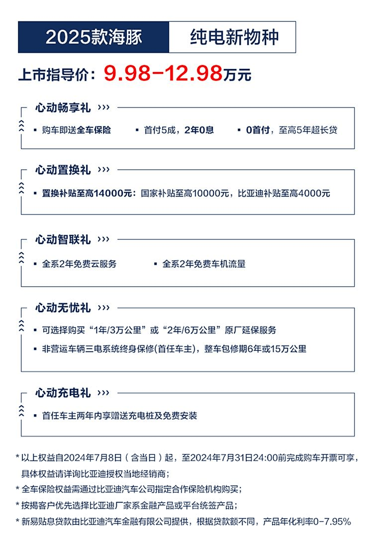 2025款比亚迪海豚上市:起售价不变,低配版和旗舰版续航提升