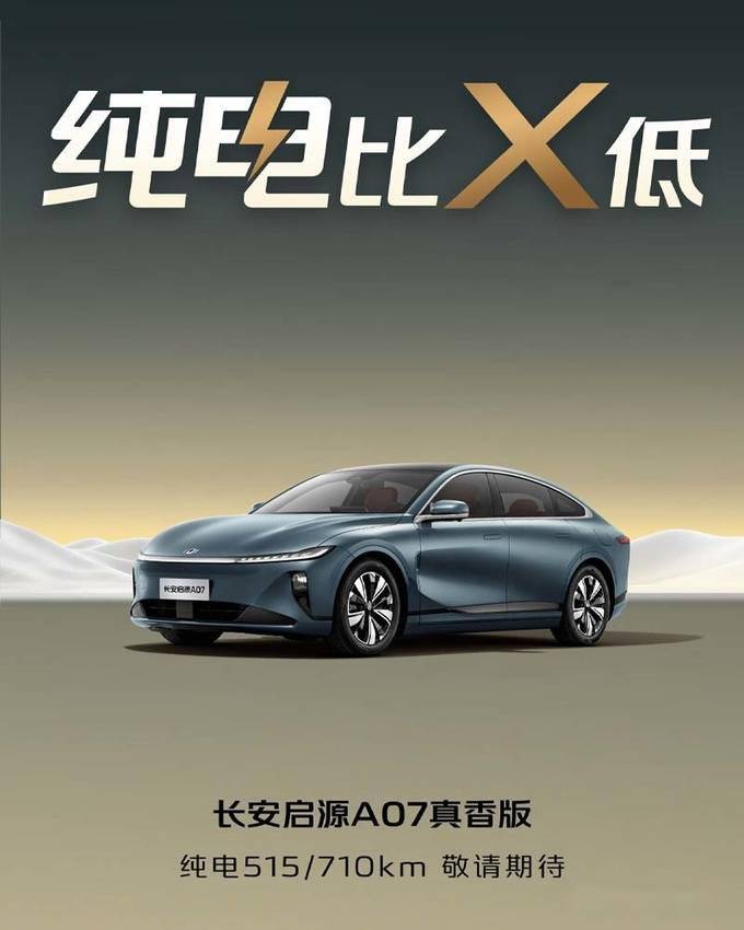 智电出行获悉,长安启源A07真香版即将上市,官方在其预热海报中写道“纯电比X低”。据销售人员透露,官方海报中的“X”代表油车,其价格非常值得期待。A07真香版分为515km和710km两种续航,现款A07纯电全系(指导价区间16.69万元-17.99万元)只有515km一种续航版本。A07真香版如果以超低价格入市,将对比亚迪海豹、汉、零跑C01等竞争对手造成很大的冲击。
