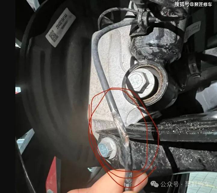 2、排查线束,发现减震器线束与车辆摩擦导致损坏;