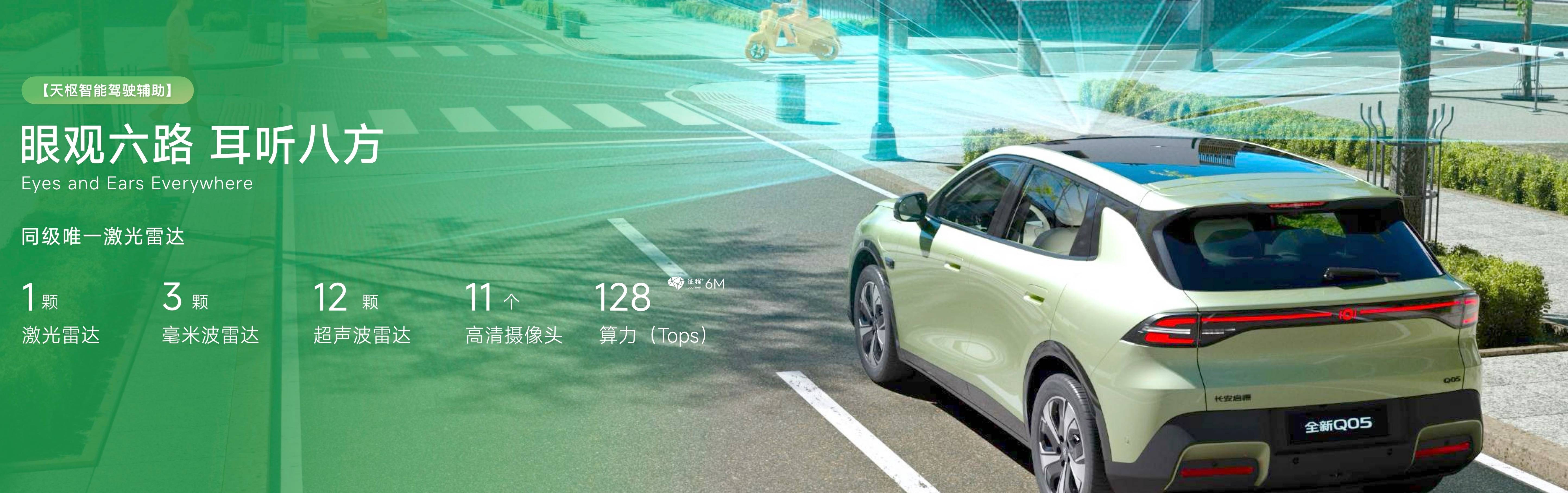 此外,新车搭载天枢智能座舱系统,内置有4纳米天玑MT8676芯片,支持端侧大模型、5G网络等,其中语音助手接入科大讯飞星火大模型。在辅助驾驶方面,长安启源全新Q05搭载天枢驾驶辅助系统,配备1颗激光雷达、11颗高清摄像头、3颗毫米波雷达和12颗超声波雷达共27个智能传感器,可实现高速/城市高架领航辅助(NOA),并支持自动变道超车、出入匝道、规避障碍等功能,同时还支持全场景智能泊车功能。