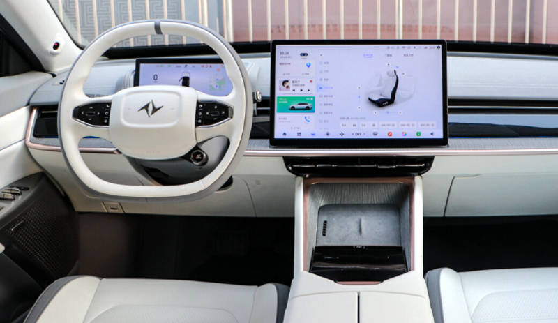 拥有4880mm车长,以及2915mm轴距的奕派eπ007,内饰方面看似简约但不简单,多功能方向盘,丰富的储物槽,包裹性较强的座椅等,既注重实用性也有着不错的舒适度,处于醒目位置的中控大屏,不仅融合了诸多功能,还彰显出一定的科技感。