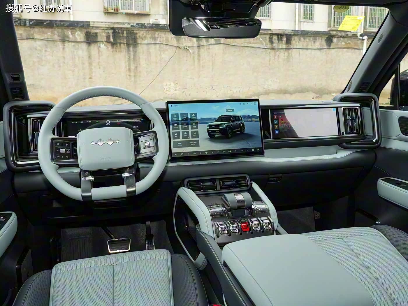 新款方程豹豹5提供了5款外观配色以及3款内饰配色,内饰设计和现款车型保持一致,12.3英寸液晶仪表+26英寸HUD抬头数字显示+15.6英寸中控屏+12.3英寸副驾娱乐屏,可以显示丰富的车辆信息和娱乐内容,还有18喇叭DEVIALET帝瓦雷品牌音响、多色主动式环境氛围灯、前排50瓦手机无线充电等。