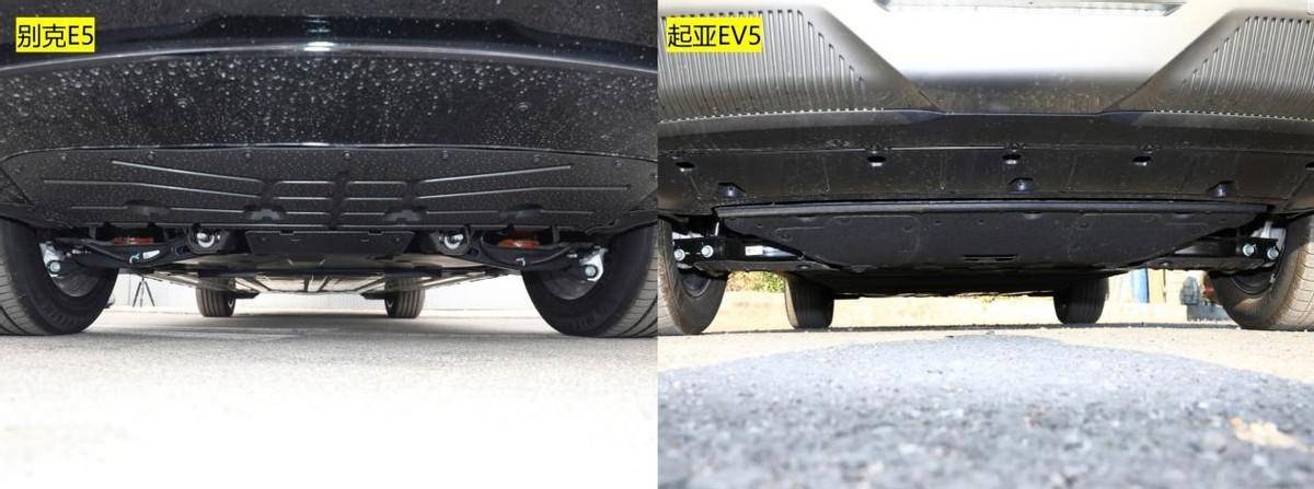 可以看到,别克E5的车长、车宽以及轴距非常有优势,而起亚EV5仅仅只是车高有优势。但起亚EV5的接近角为19度,离去角为25度,别克E5的接近角为17度,离去角为19度,要说谁是SUV,我看起亚EV5在崎岖路面通过性上更匹配得上SUV的身份。