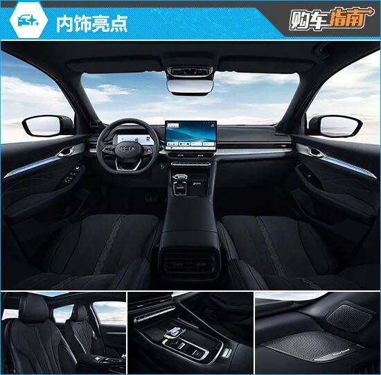 内饰采用“T”字形布局,皮质包覆细腻柔软,辅以诸多中国风元素,如九色神鹿纹饰等,显著提升精致感。10.2英寸液晶仪表与14.6英寸中控屏成为视觉焦点,内置Flyme Auto系统。中高配车型搭载高通骁龙8155芯片,充分保障功能性与操作流畅度。