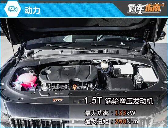 吉利星瑞全新东方曜提供两种动力,其中,1.5T发动机最大功率133kW,最大扭矩290N·m,匹配7速湿式双离合变速箱;2.0T发动机最大功率200kW,最大扭矩400N·m,匹配8速手自一体变速箱。