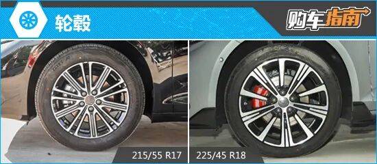 轮毂方面,吉利星瑞全新东方曜惊鸿版和扶摇版配备17英寸多辐式铝合金轮毂,匹配规格为215/55 R17的轮胎;其余车型则升级为18英寸轮毂,样式更加时尚动感,匹配规格为225/45 R18的轮胎。