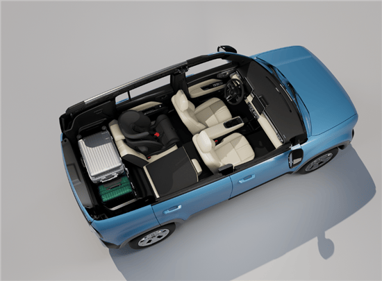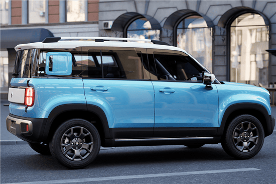 侧面线条则延续了方正硬朗的设计,线条流畅且有力,再配合轮眉的黑色防擦条,彰显出硬派越野的独特韵味。C柱后方巧妙增加了一块与车身同色的装饰板,风格上与路虎卫士颇为相似,为整车增添了一抹别样的风采。新车长宽高分别为3996mm*1760mm*1726mm,轴距达到2560mm。