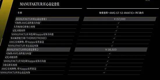 内饰方面,新车采用悬浮式双联屏设计,并配备了全新样式的三辐方向盘。材质方面,新车提供了丰富的选装配置,包括AMG哑光碳纤维套件(选装费4.3万元)、不同材质的车顶内衬、Nappa皮饰/MICROCUT微纤维AMG高性能方向盘(选装费6300元)等。
