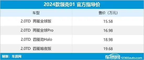 4月11日,车质网从领克汽车获悉,2024款领克01正式上市,新款车型新增趣野绿车漆,并针对配置进行升级。此次新车共推出4款车型,均搭载2.0T发动机,售价区间为15.58-19.68万元。