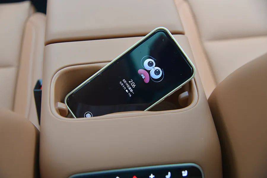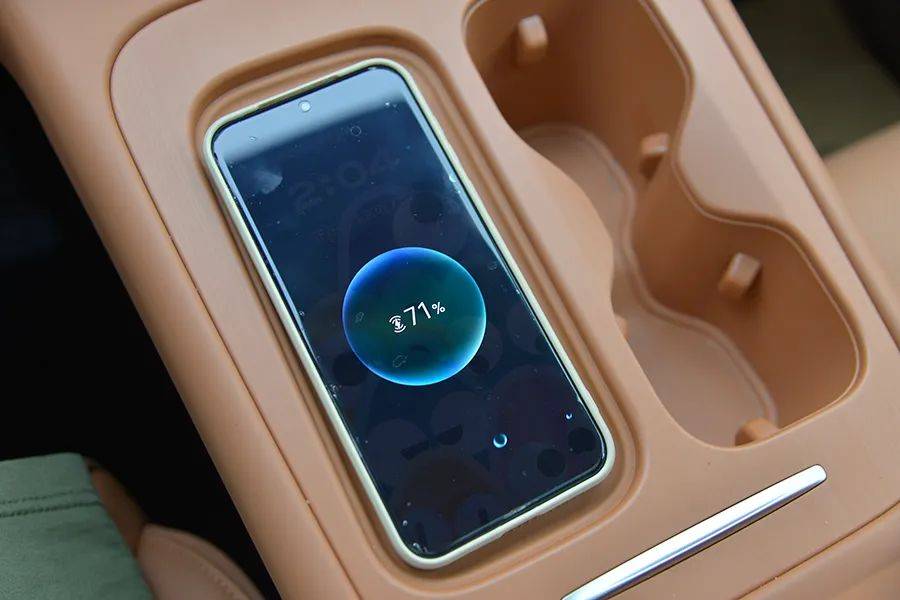 屏幕下方有两个杯架,以及一个手机无线充电的位置,但不支持50W快充。