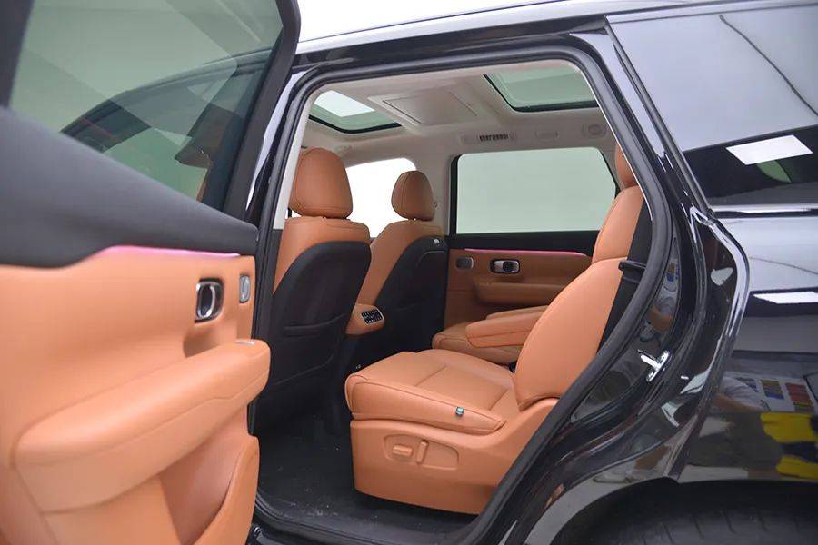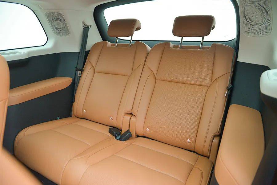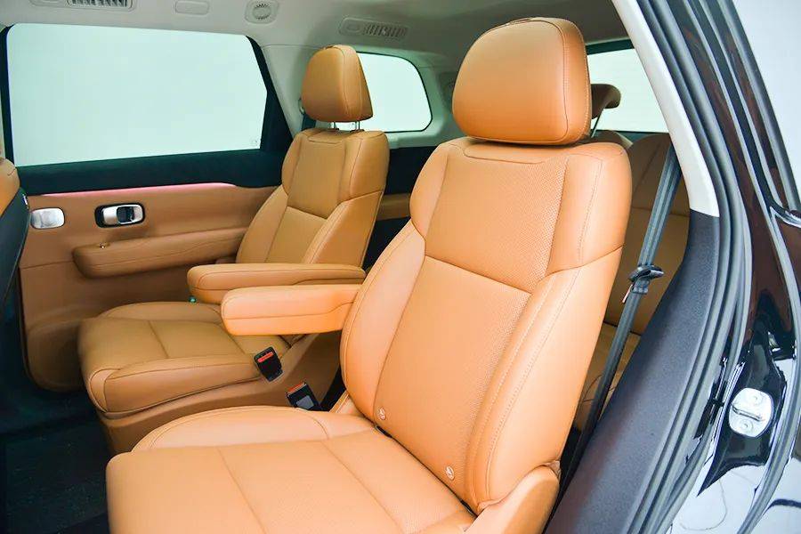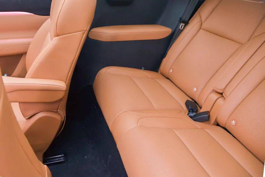 第二排相比其他6座或7座车型,座椅偏窄,中央通道比较宽,而且还多了扶手,相对而言没有那么舒适。因为要考虑第三排乘客上车的问题,所以这辆车第二排座椅留有中央通道,方便乘客进入第三排。