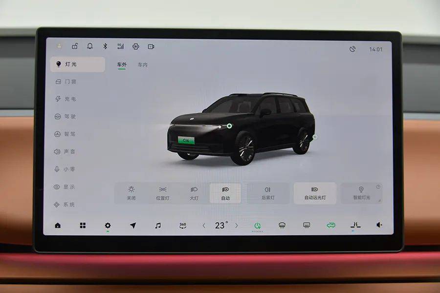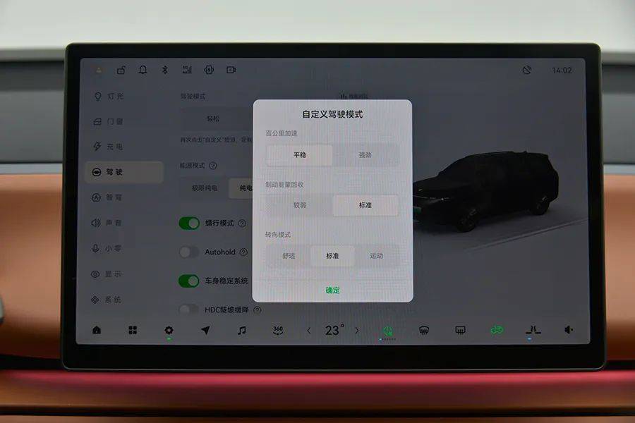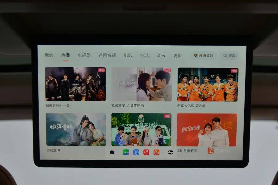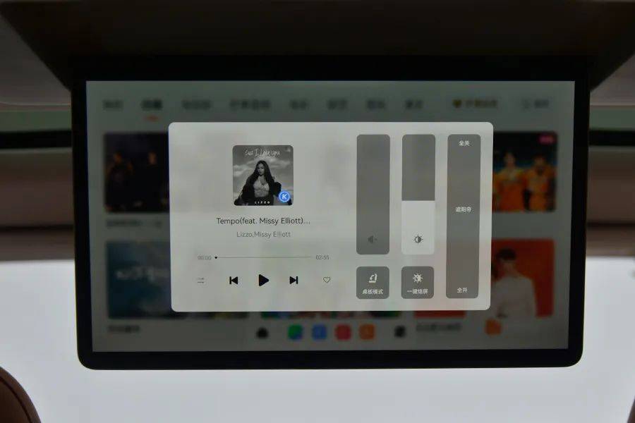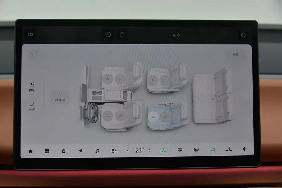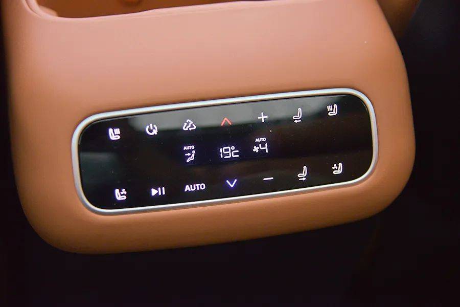 和“理想”不同的是,后排的“大彩电”不能电动开启,只能通过手动打开,缺少了仪式感,并且只有一种打开角度,不能上下调节。屏幕尺寸为15.6英寸,支持触摸控制。