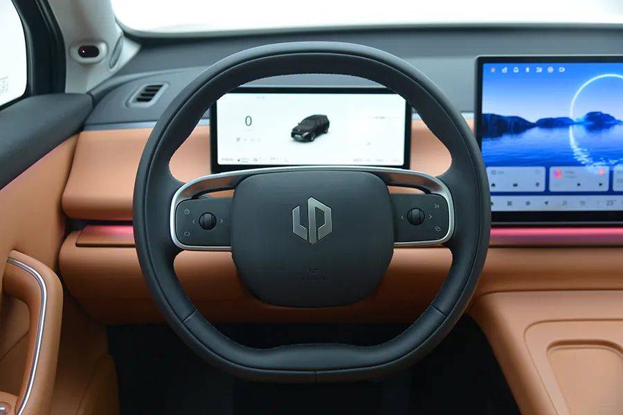 两幅方向盘两侧的多功能方向球,与特斯拉相似,但把“锁车”键安排到方向盘上,真是从来没有见过。
