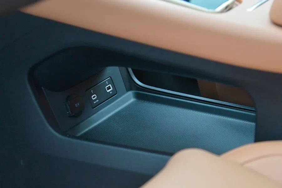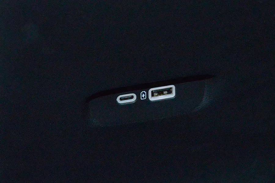 下方还有一个不大不小的储物空间,配有一个12V电源、一个USB和一个Type-C接口。