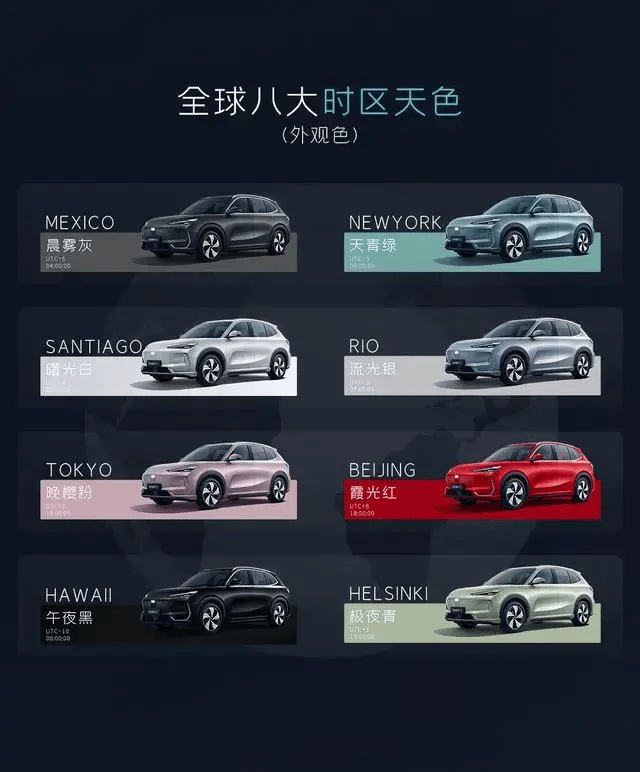 此外,新车一共提供了晨雾灰、天青绿、曙光白、流光银、晚樱粉、霞光红、午夜黑、极夜青共8种车身颜色,其中午夜黑车型9月交付,极夜青车型要11月才交付。