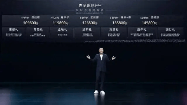 2024年8月3日吉利银河 E5正式上市,新车共发布5款车型,指导售价为10.98万元--14.58万元,动力上,搭载单电机驱动系统,综合最大续航530km。
