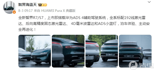 此前,智界品牌产品总监还透露,新车将搭载4D毫米波雷达、后向高精度固态激光雷达和ADS小蓝灯。