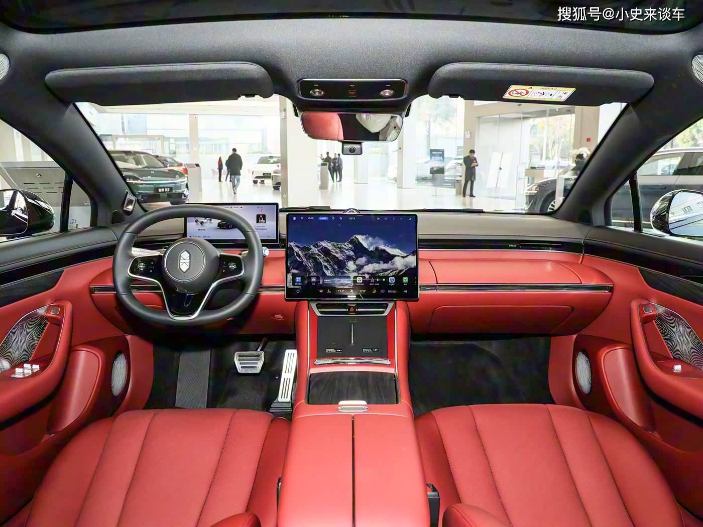 进入车内,内饰延续豪华游艇环抱式布局,核心交互区域由12.3英寸全液晶仪表与16.1英寸3K中控屏组成,内置鸿蒙系统,操作流畅顺滑,支持多屏联动与整车OTA升级,可实现导航、娱乐等功能的无缝切换。配置上诚意满满,前排双50W无线快充、三温区自动空调、CN95抗菌滤芯等实用功能均为标配,2950mm的长轴距为车内空间提供了充足保障,前排座椅支撑性与包裹性出色,无论是日常通勤还是长途驾驶都能有效缓解疲劳;后排腿部空间宽敞,即使身高180cm的乘客乘坐,也能获得充足的伸展空间。